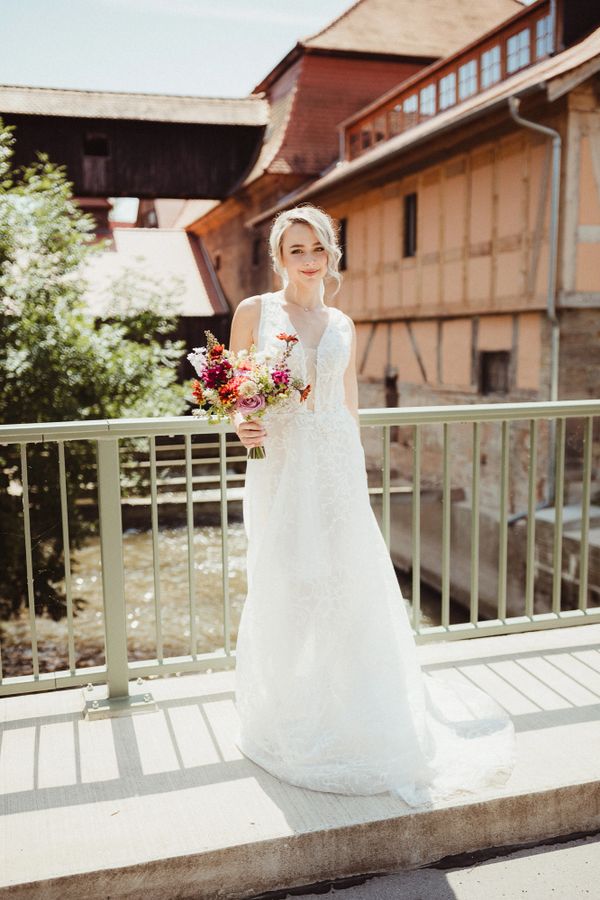 Der große Saal im Inneren besticht durch einen historischen Holzboden und eine wunderschön aufgearbeitete und restaurierte Patina an den Wänden. Außen präsentiert sich das Gebäude herrschaftlich und eindrucksvoll. Das weitläufige Gelände, das sich wie eine kleine Stadt direkt an einem Seitenarm der Saale erstreckt, lädt zu vielfältigen Events ein – von Hochzeiten und Tagungen bis hin zu exklusiven Business Events.